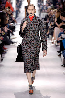 It would seem that this line had some influence from trends from previous eras, especially those seen in the Thirties. One of the more prominent accessories to walk the runway were lace up heels/boots. The shoes were very reminiscent of a vintage women's boot style from the 1930s. Additionally, the numerous jackets that were seen were mostly double breasted trench coats, a popular style for men's suits introduced in the 1930's as well. None of the pieces were especially tight, also alluding to an earlier decade in women's fashion.